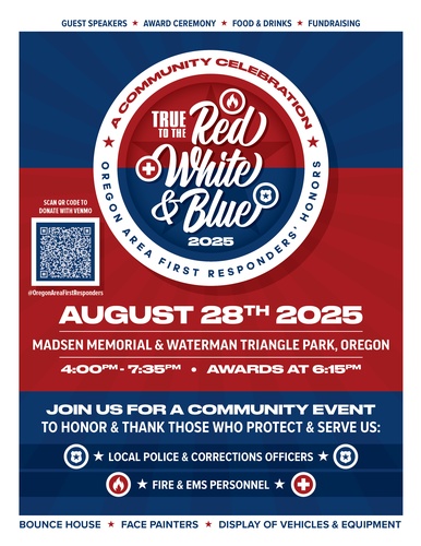 Welcome to our fifth annual Oregon Area First Responders' Community celebration. A celebration to reflect on what our community; what our family life might be in our village without the dedication and support of our highly trained and dedicated first responders. This is your opportunity as a community member to personally thank each of our local heroes.